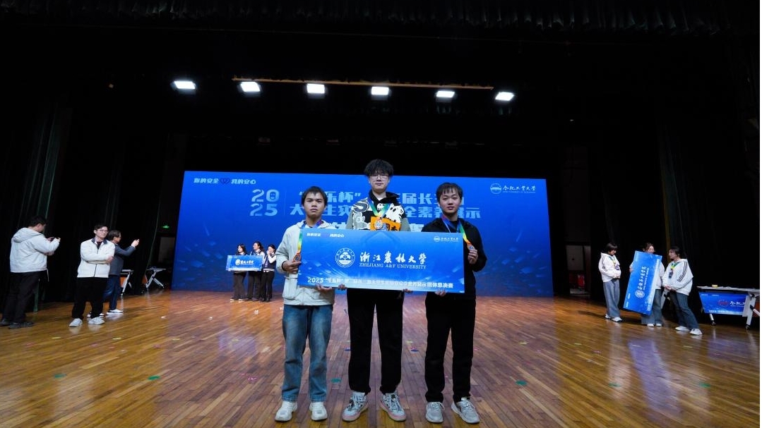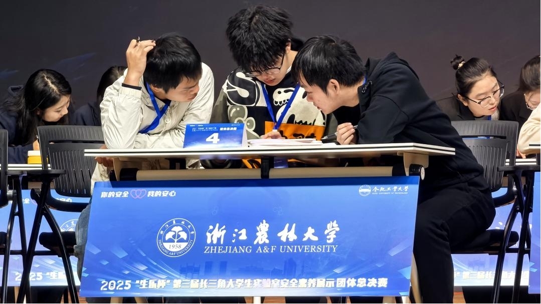 近日,由上海市学校安全协会实验室安全分会、江苏省高校实验室研究会、浙江省高校实验室工作研究会、安徽省高等学校实验室工作研究会联合主办、合肥工业大学承办的第三届长三角大学生实验室安全素养交流活动(团体交流总决赛)圆满落幕。由我校现代农学院农学研2505班徐葛弈、本科植物保护241班范吴靖和动物科技学院、动物医学院本科动物医学224朱美真三位同学组成的代表队团结协作、沉着应战,历经两轮角逐,荣获团体二等奖,充分展现了我校学子扎实的实验室安全素养与昂扬的精神风貌。