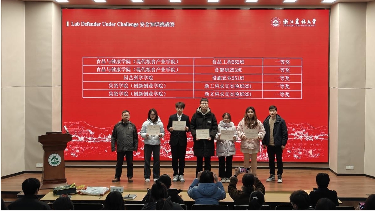 近日,浙江农林大学2025年“瀚广杯”实验室安全知识与技能大赛颁奖仪式顺利举行。本次大赛旨在进一步强化师生实验室安全意识,推动安全文化融入日常教学科研实践,营造“人人讲安全,个个会应急”的校园氛围。
